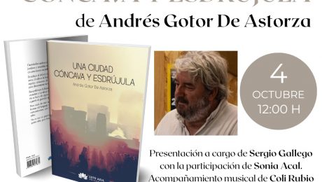 FECHA: Sábado, 4 de octubreHORA: 12:00 hTÍTULO ACTIVIDAD: Presentación del libro Una ciudad cóncava y esdrújula de Andrés GotorCATEGORÍA: Literatura / PoesíaINTERVIENEN: Presentación a cargo de Sergio Gallego con la
