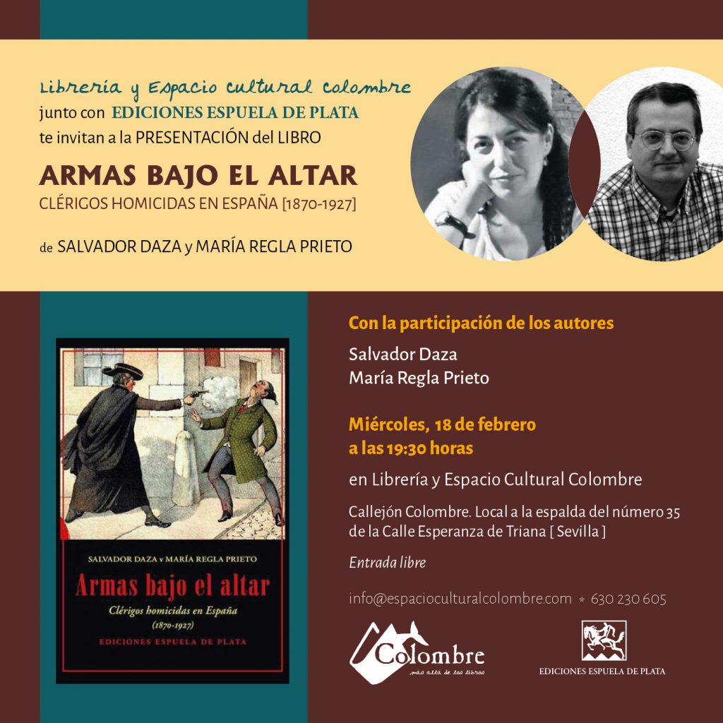 Miércoles, 18 de febrero, presentación del libro Armas bajo el altar, de Salvador Daza y María Regla Prieto