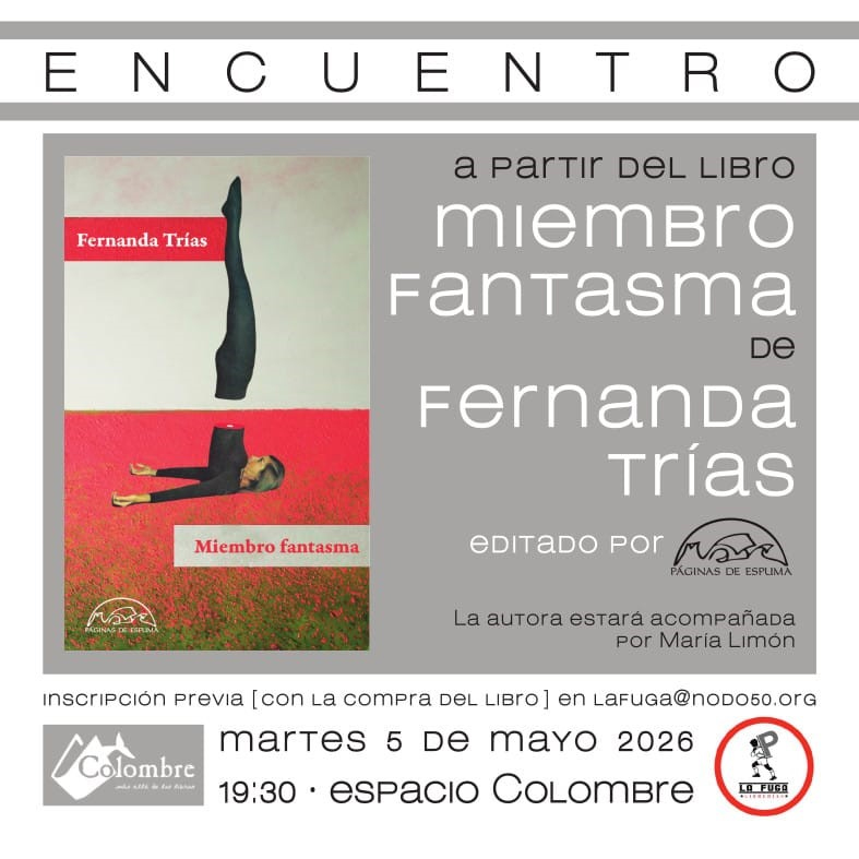 ACTIVIDAD: El martes 5 de mayo, a las 19:30 os invitamos a un encuentro a partir del recién editado, libro de relatos Miembro fantasma con su autora, Fernanda Trias, acompañada de María Limón. Para participar es necesario reservar plaza y comprar el libro en La Fuga Librerías, ya que lo destriparemos a placer.