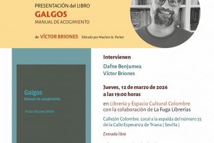 • Jueves, 12 de marzo, Presentación del libro Galgos. Manual de acogimiento de Víctor Briones, con Dafne Benjumea