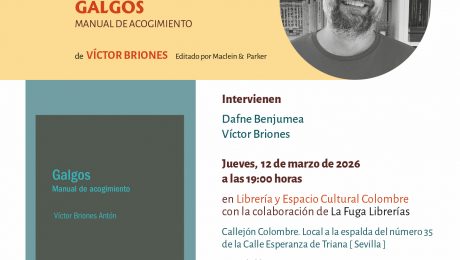Jueves, 12 de marzo, Presentación del libro Galgos. Manual de acogimiento de Víctor Briones, con Dafne Benjumea
